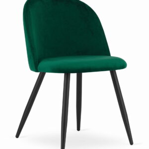 Zestaw 2 krzeseł welurowych w kolorze butelkowej zieleni. Czarne metalowe nogi. Nowoczesny design i wygoda użytkowania.