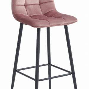 Zestaw 4 wysokich hokerów (76 cm). Ciemny róż, welur, czarne nogi. Idealne do dużego barku. Styl glamour. Wytrzymałe i stabilne.