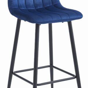 Zestaw 2 wysokich hokerów (siedzisko 76 cm). Granatowy welur, czarne nogi. Przeznaczone do wysokich blatów barowych (110 cm).