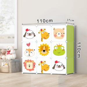 Szafka modułowa dla dzieci 9 elementów. Bajkowy nadruk, kolor zielony. Lekka i pojemna konstrukcja DIY.