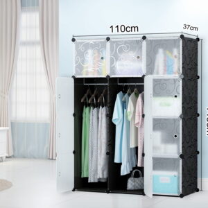 139,99 złDuża szafa modułowa 12 elementów. Półki i miejsce na wieszaki. Kolor czarny. Idealna dla studenta.