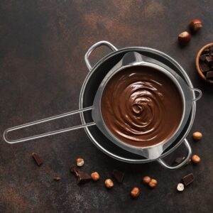Duża miska do kąpieli wodnej (1.2L). Stal nierdzewna. Długa rączka, dwa dzióbki. Idealna do dużej ilości czekolady lub wosku. Marka Orion.