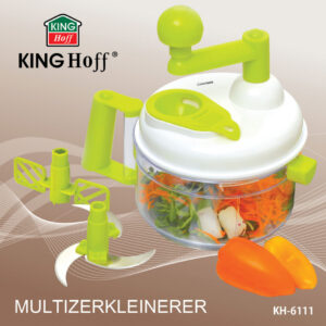 Ręczny robot kuchenny z korbką. Sieka warzywa, ubija pianę, oddziela żółtka. Wielofunkcyjny i kompaktowy. Marka Kinghoff.