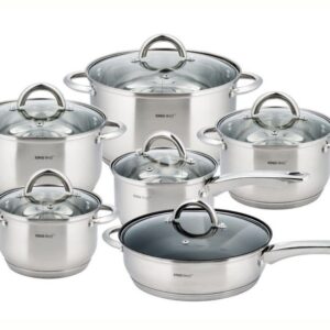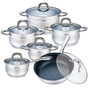 Zestaw 10 garnków ze stali nierdzewnej z miarką. Dno 5-warstwowe, na indukcję. Zawiera rondel i 4 garnki z pokrywkami. Solidny wybór na lata. Marka Kinghoff.