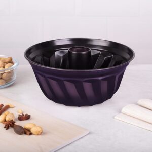 Fioletowa forma do babki z kominem 25 cm. Seria Purple Eclipse. Powłoka tytanowa, nieprzywierająca. Idealna do babek piaskowych i drożdżowych. Berlinger Haus.