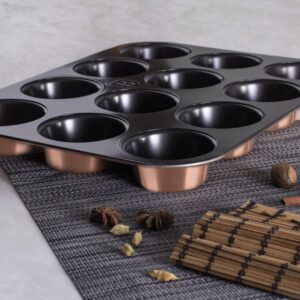 Luksusowa forma na 12 muffinek w kolorze Rose Gold. Powłoka tytanowa non-stick. Trwała, Eco Friendly. Idealna do eleganckich wypieków. Marka Berlinger Haus.