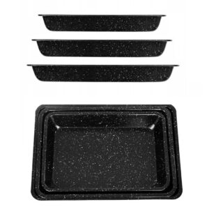 Zestaw 3 prostokątnych blach do pieczenia. Powłoka marmurkowa nieprzywierająca. Stal węglowa. Odporne do 250°C.