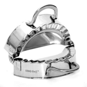 Stalowa foremka do lepienia pierogów 8 cm. Narzędzie 2w1: wykrawacz i zaciskacz. Tworzy idealne pierogi i ravioli. Można myć w zmywarce. Marka Kinghoff.