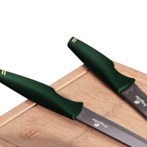 Zestaw 6 el.: 5 noży i deska bambusowa. Kolor Emerald. Powłoka non-stick.