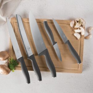 Zestaw 6 el.: 5 noży i deska bambusowa. Kolor Antracit. Stal nierdzewna.