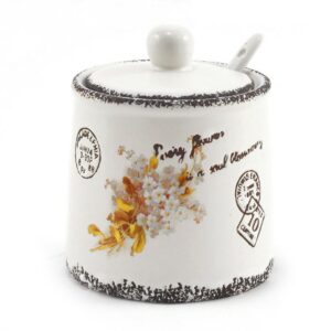 Stylowa cukiernica ceramiczna Maestro z łyżeczką. Wykonana z grubej, wysokiej jakości ceramiki. Ekologiczna, chemicznie neutralna i trwała. Wymiary 10 x 9 cm. Idealna na prezent.