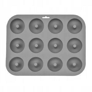 Forma silikonowa na 6 donutów (pączków z dziurką). Wymiary 24×16 cm. Nieprzywierająca, trwała, łatwa w czyszczeniu. Idealna do małych piekarników. Marka Brunbeste.