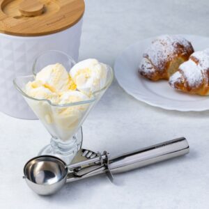 Gałkownica do lodów ze stali nierdzewnej. Mechanizm sprężynowy ułatwiający nakładanie. Średnica 5 cm. Trwała i higieniczna. Marka Kinghoff.