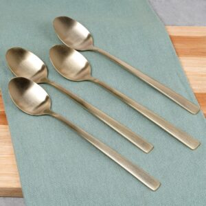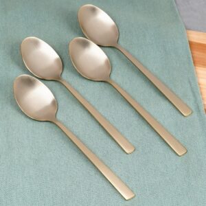 Zestaw 4 łyżeczek do herbaty w kolorze złotym satynowym (mat). Stal nierdzewna. Nowoczesny, elegancki wygląd. Do zmywarki. Excellent Houseware.