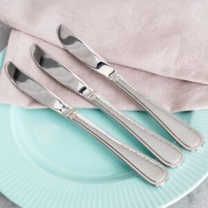 Zestaw 3 noży stołowych z efektem młotkowanej stali. Stal nierdzewna, srebrny połysk. Eleganckie i nowoczesne. Do zmywarki. Marka Nava.