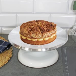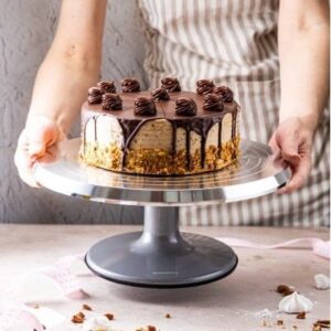 Aluminiowa patera obrotowa do dekorowania tortów. Średnica 25 cm. Płynny obrót 360°. Stabilna, antypoślizgowa podstawa. Marka Brunbeste.