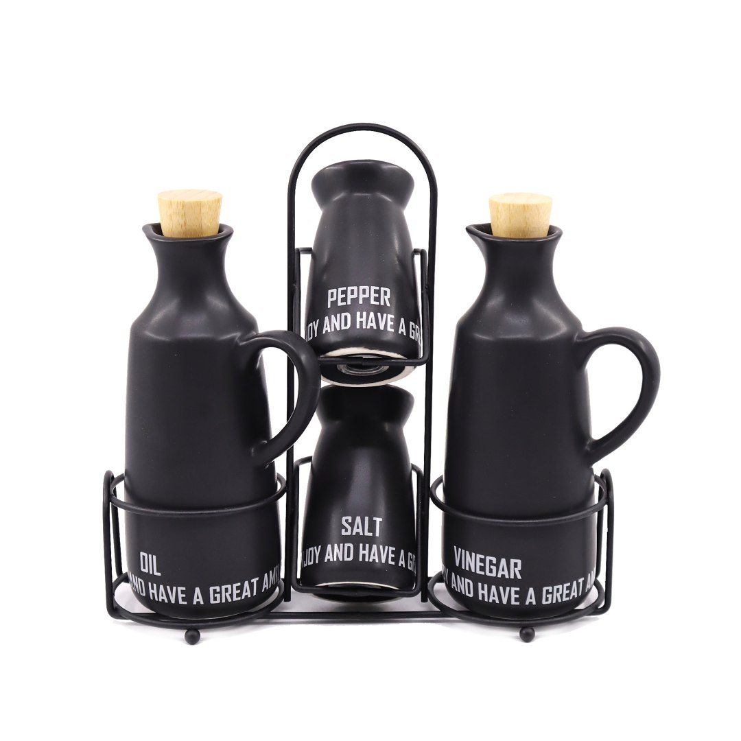 Wprowadź ład i naturalny styl do swojej kuchni z zestawem Eco Style MR-20029-04S. Ten 5-elementowy komplet to połączenie ekologicznej ceramiki z nowoczesnym, metalowym stojakiem. Zestaw zawiera dwie butelki (300 ml) na płynne przyprawy oraz solniczkę i pieprzniczkę (100 ml). Ponadczasowe wzornictwo i wysoka jakość wykonania sprawiają, że jest to idealny wybór dla osób ceniących estetykę i funkcjonalność.