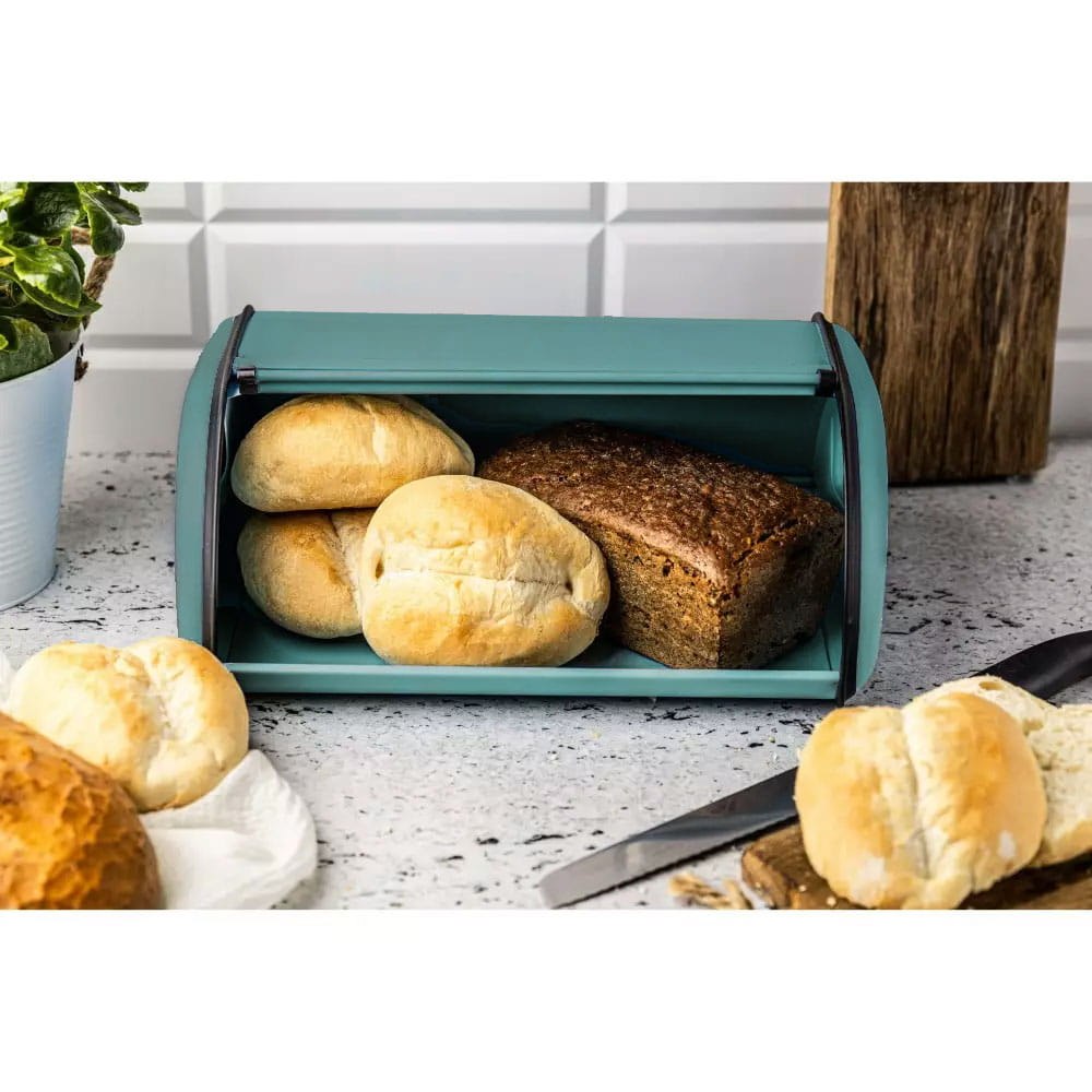 Dodaj swojej kuchni energii z chlebakiem Kinghoff KH-1755. Ten kompaktowy model o szerokości 36 cm to idealne rozwiązanie do mniejszych kuchni, gdzie liczy się każdy centymetr. Wykonany z solidnej stali, został pokryty lakierem w modnym, zielonym matowym odcieniu. Bezkolizyjna pokrywa łagodnie chowa się do wnętrza chlebaka, nie wymagając dodatkowego miejsca na blacie przy otwieraniu. To połączenie funkcjonalności z designem, który ożywi każde wnętrze.
