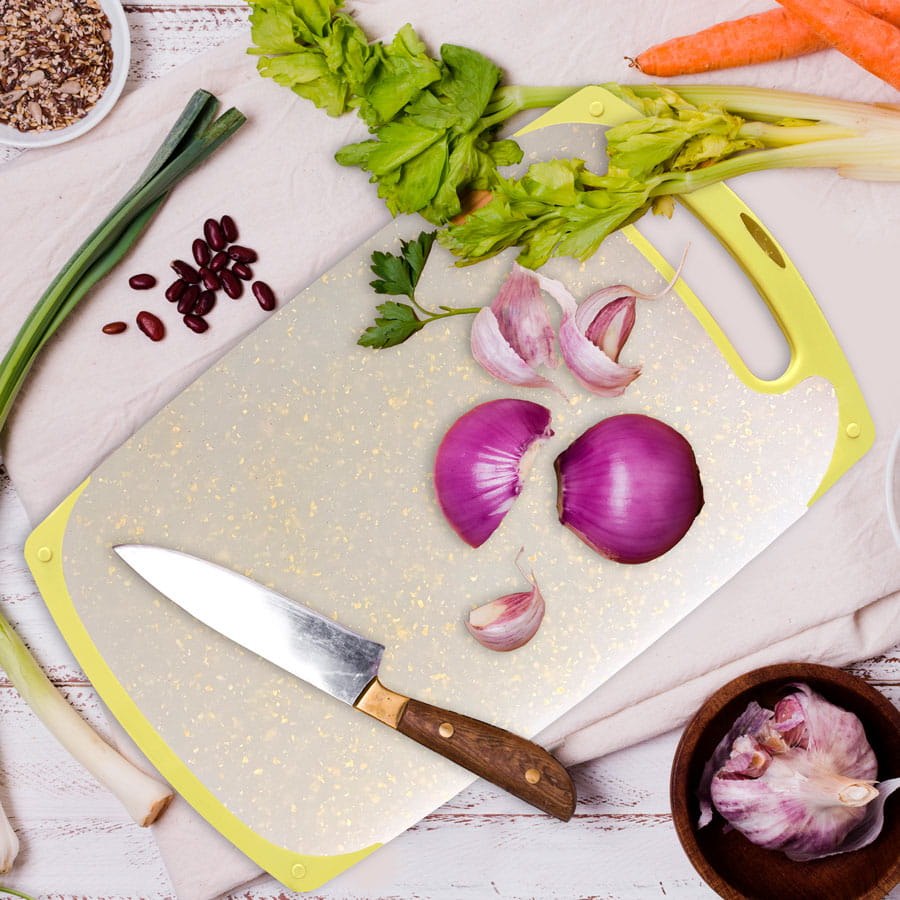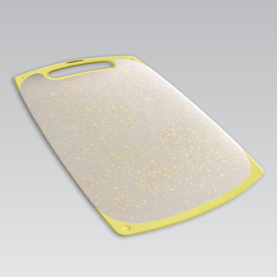 Deska do krojenia z tworzywa 41×24 cm. Wyposażona w silikonowy uchwyt i antypoślizgową powierzchnię. Nie tępi noży, można myć w zmywarce. Praktyczna i trwała. Marka Maestro.