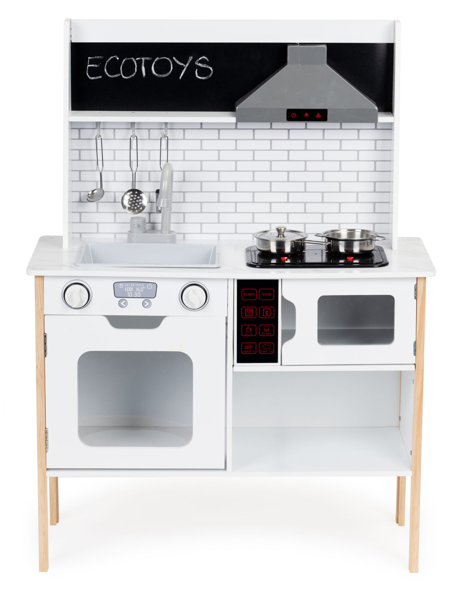 Zabawa w gotowanie nabiera nowego wymiaru z modelem od ECOTOYS. Kuchnia została wyposażona w palniki LED, które imitują nagrzewanie, oraz moduł dźwiękowy imitujący gotowanie wody. Duża ilość szafek pozwala dziecku na naukę organizacji pracy i wyrabia nawyk odkładania przyborów na miejsce.