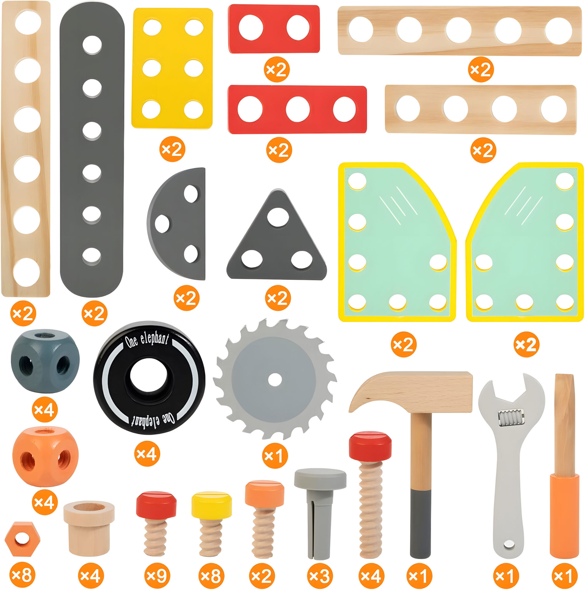 Zaszczep w swoim dziecku pasję do tworzenia! Warsztat od ECOTOYS to profesjonalne stanowisko pracy, które uczy obsługi młotka, klucza czy piły w 100% bezpiecznych warunkach. Zestaw pozwala na zbudowanie aż 9 różnych zabawek (robot, rower, statek i inne), co rozwija myślenie techniczne i motorykę małą. Każdy element jest gładko oszlifowany i pozbawiony ostrych krawędzi.