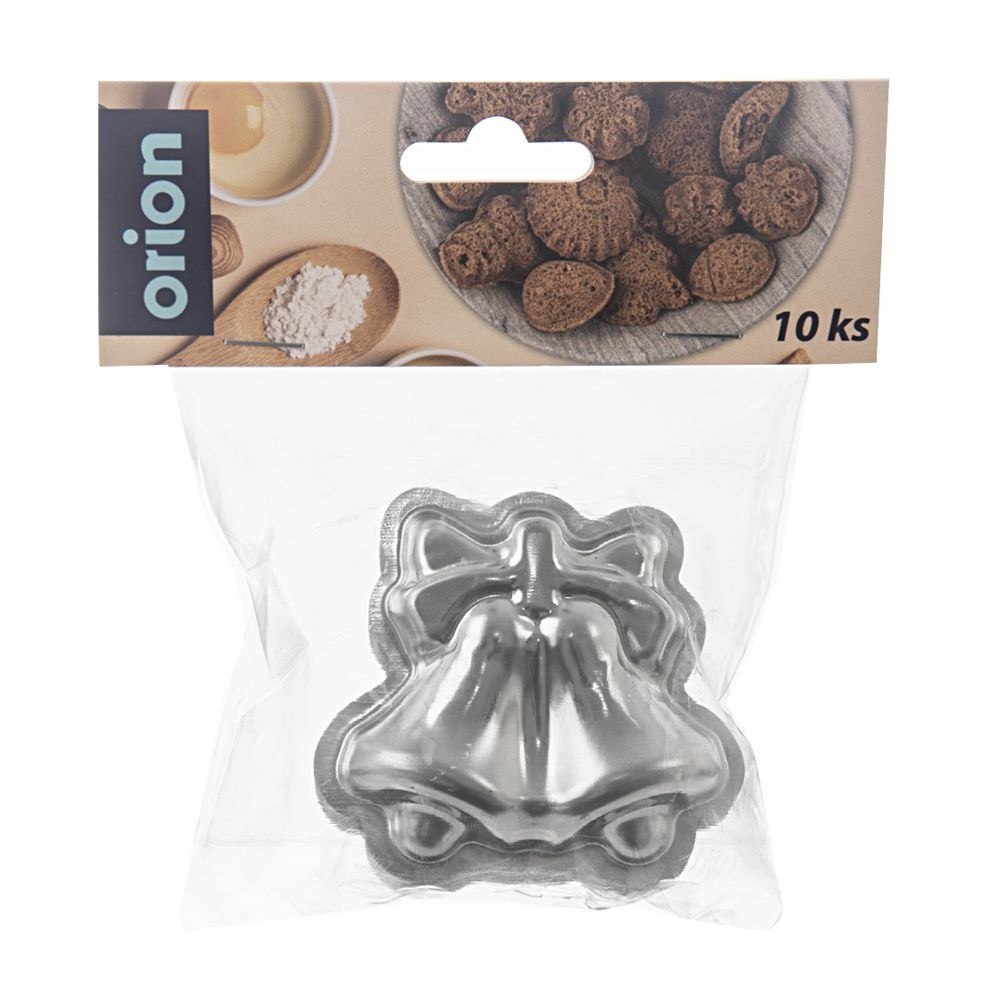 Zestaw 10 stalowych foremek do ciastek w kształcie dzwonków. Wymiary 6,5×7,5 cm. Idealne do pierniczków i ciasteczek kruchych. Trwała stal, ostre krawędzie tnące. Marka Orion.