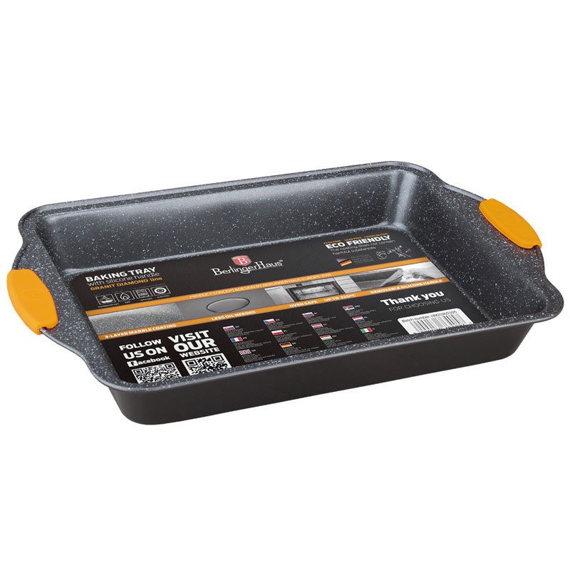 Prostokątna forma do pieczenia 36 cm z powłoką granitową. Zdejmowane silikonowe uchwyty. Nieprzywierająca, trwała, PFOA Free. Marka Berlinger Haus.