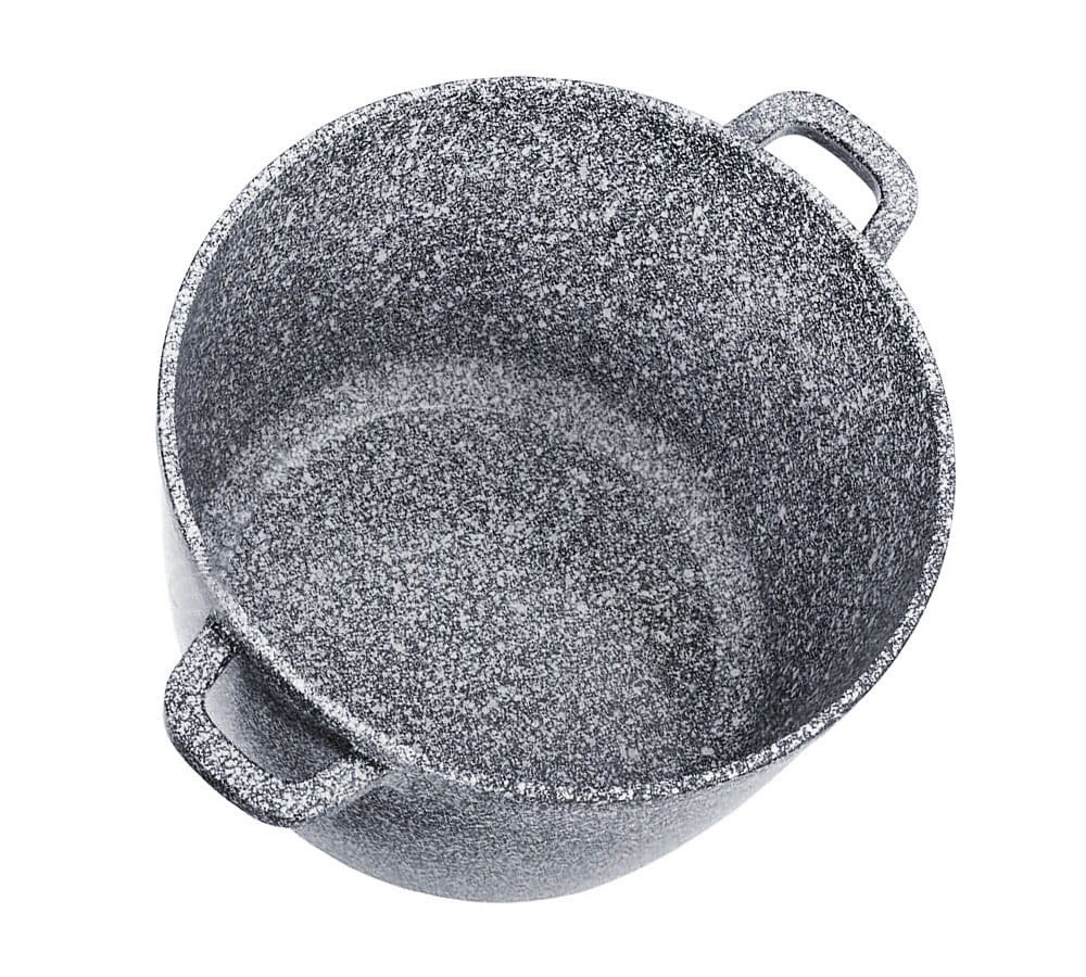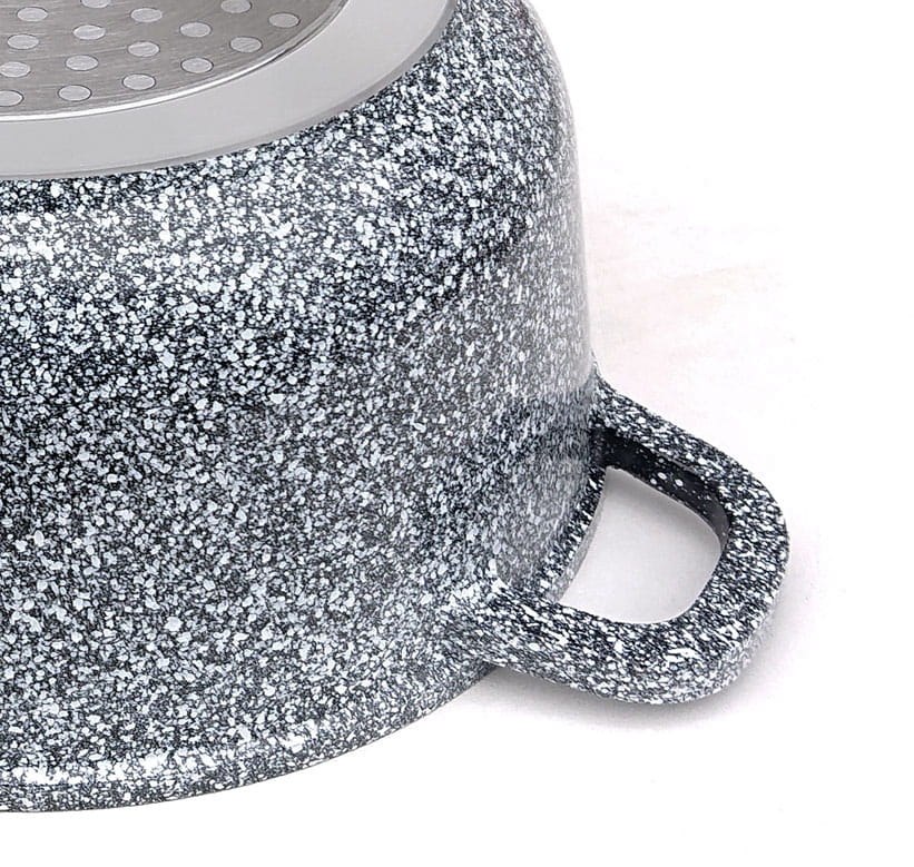 Duży garnek marmurowy 10L z dozownikiem w uchwycie (Aroma Knob). Średnica 28 cm. Powłoka non-stick, na indukcję. Idealny do bigosu i zup. Marka Klausberg.