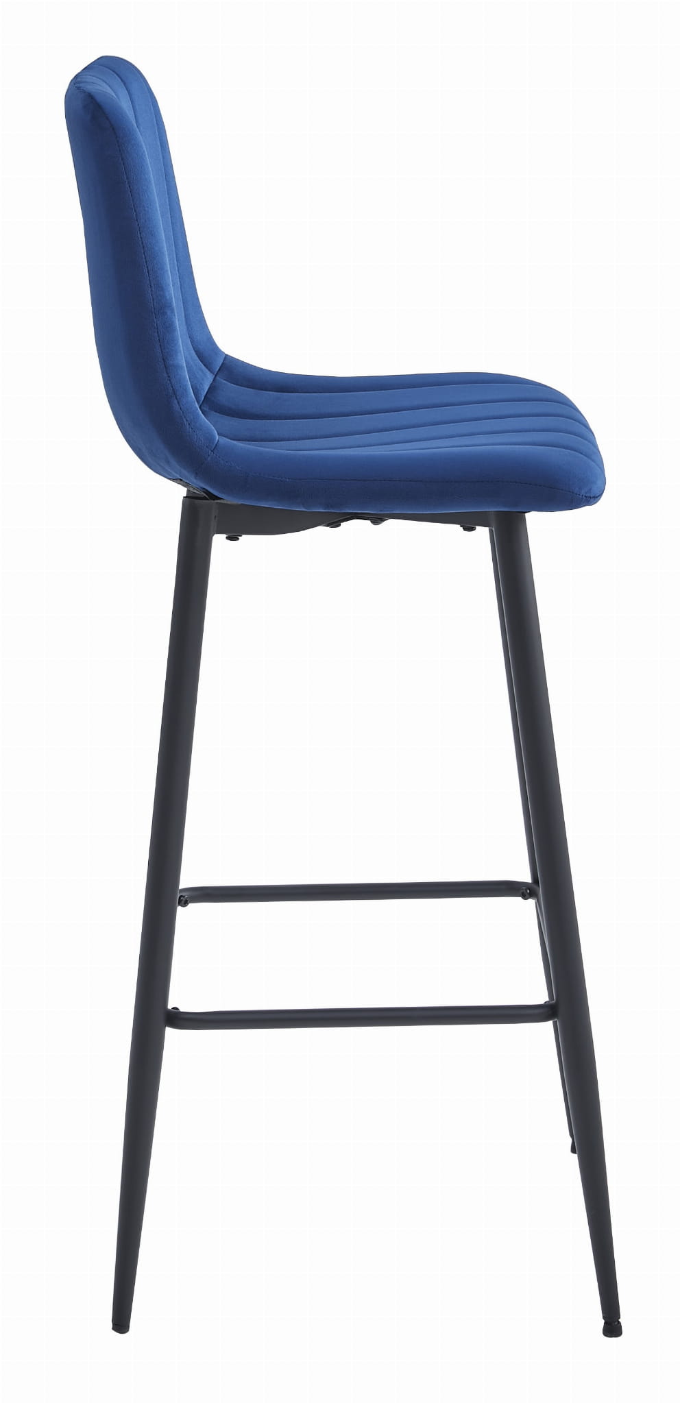 Granatowy aksamit to synonim elegancji, a czarne stalowe nogi dodają charakteru loftowego. Hokery są stabilne, posiadają wygodny podnóżek oraz oparcie lędźwiowe, co pozwala na komfortowe spędzanie czasu przy drinku czy śniadaniu.