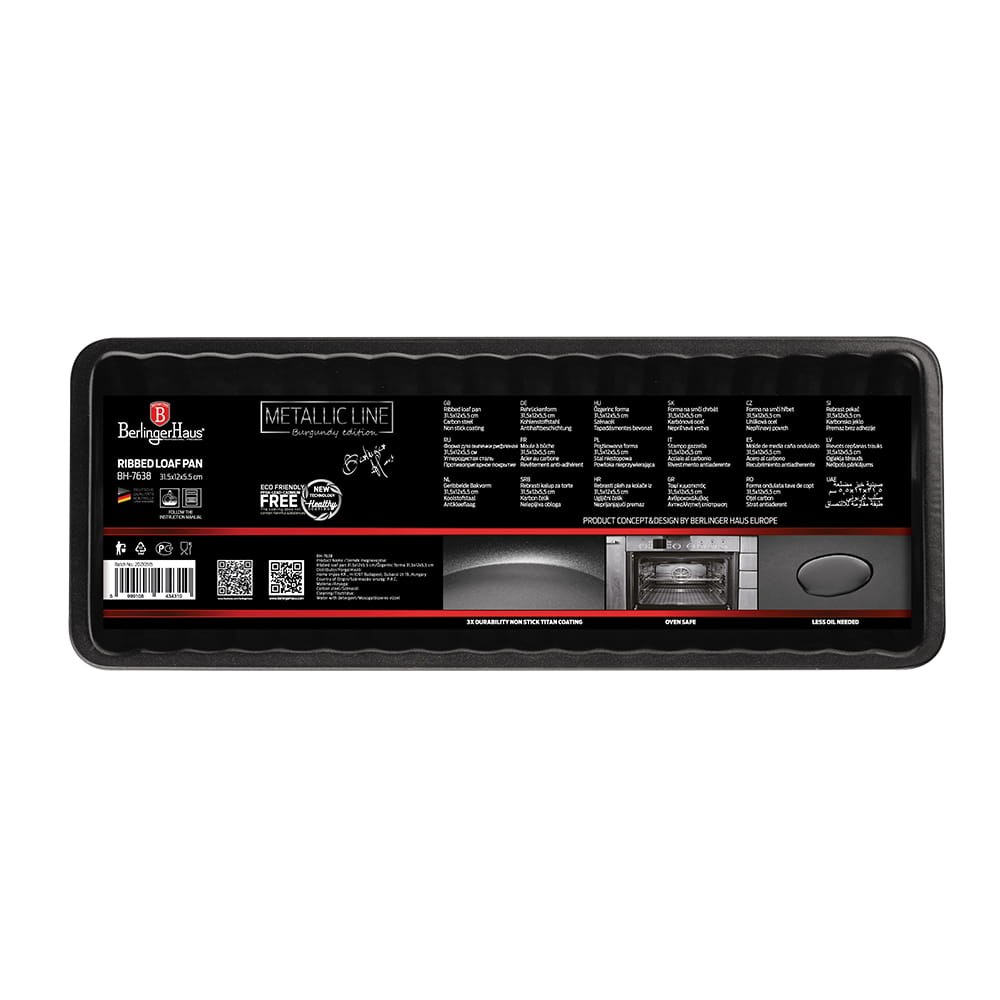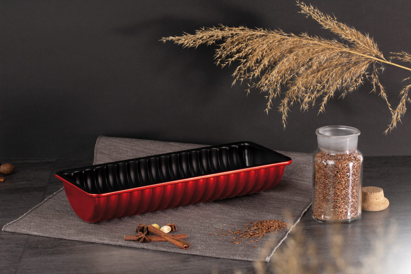 Czerwona keksówka 31,5 cm z powłoką tytanową. Seria Burgundy. Karbowana, nieprzywierająca, łatwa w czyszczeniu. Idealna do domowych wypieków. Berlinger Haus.