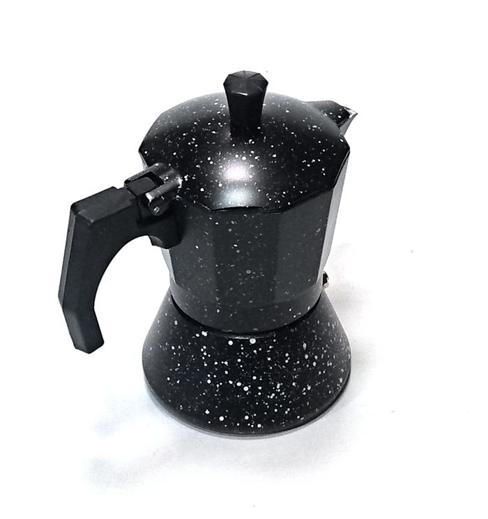 Czarna kawiarka marmurkowa na 6 filiżanek (300 ml). Działa na indukcji. Hybrydowa konstrukcja (aluminium/stal). Elegancki design. Marka Klausberg.