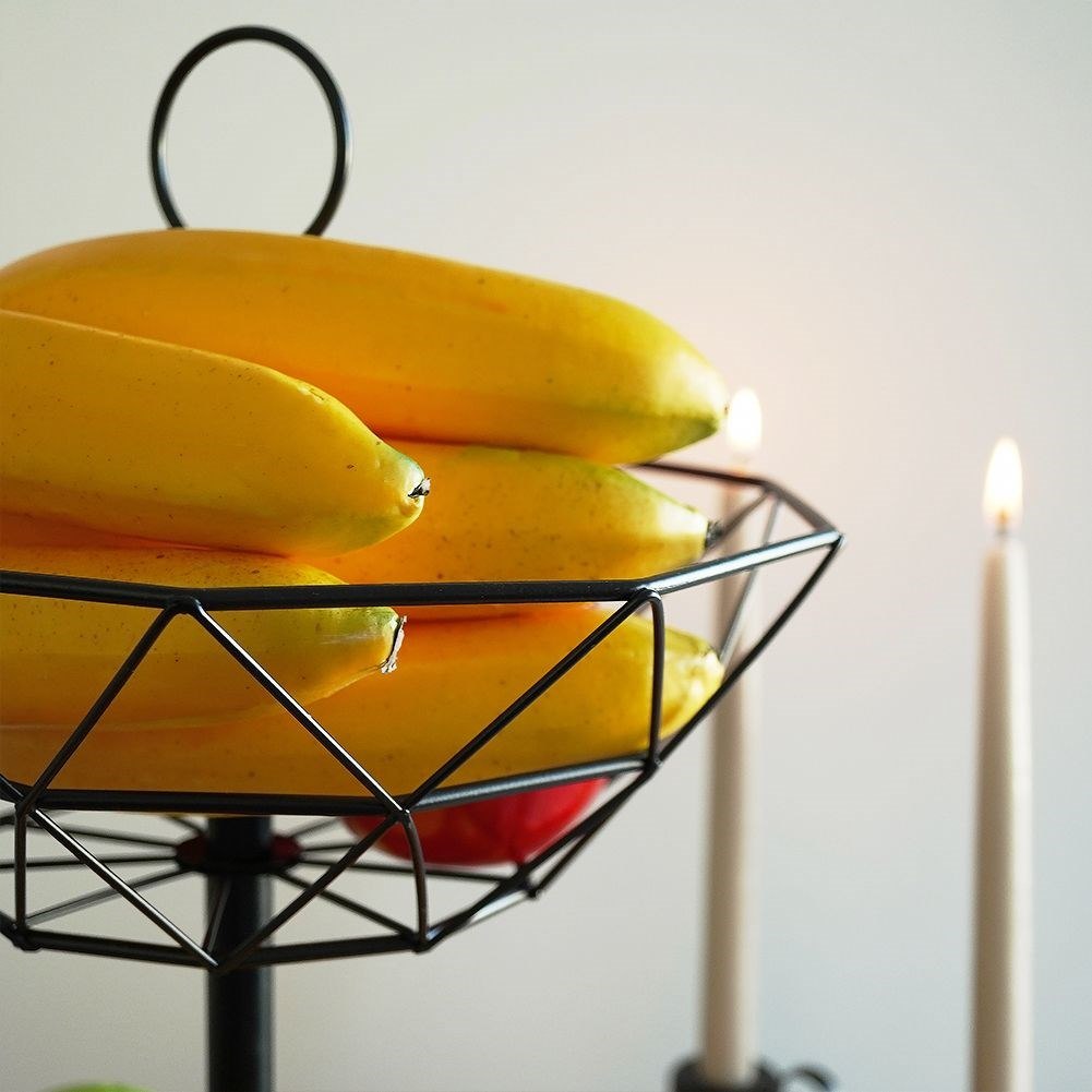 Elegancka ekspozycja Twoich ulubionych owoców. Dwupoziomowy koszyk Vilde to połączenie funkcjonalności patery z nowoczesnym stylem loftowym. Dwa okrągłe kosze (mniejszy u góry, większy na dole) umieszczone na stabilnym trzpieniu pozwalają na wygodne przechowywanie owoców bez ich gniecenia. Ażurowa konstrukcja z czarnego metalu zapewnia przewiewność i świetny wygląd na każdym stole.