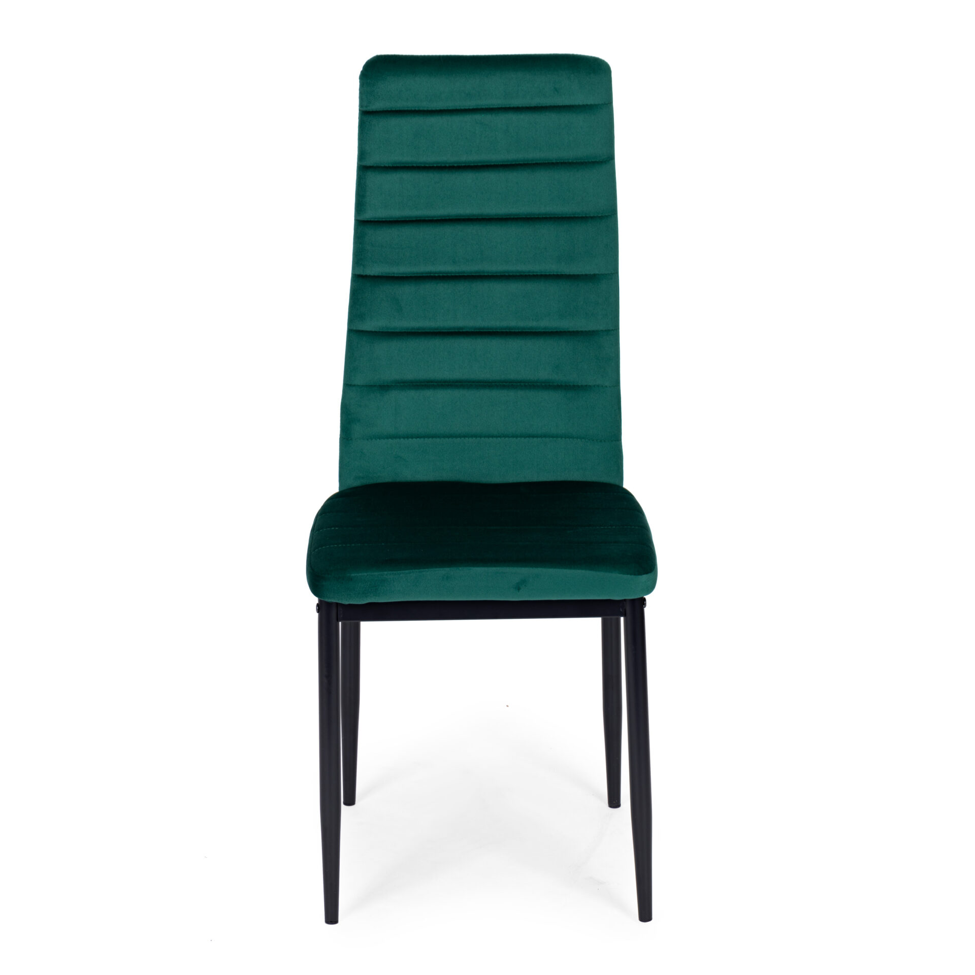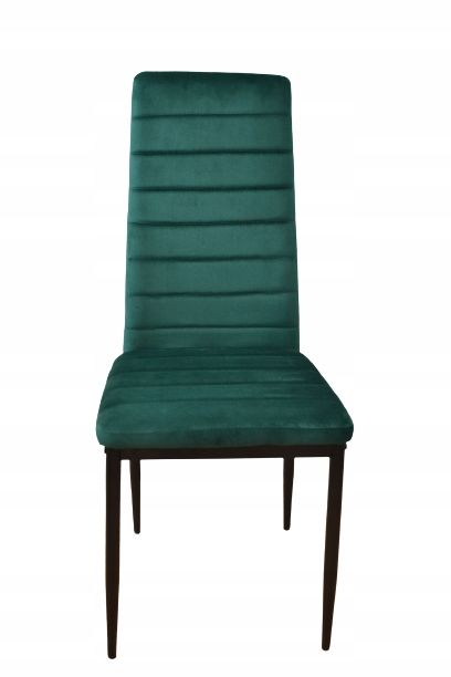 Wprowadź kolor do swojego wnętrza! Zielony zestaw 4 krzeseł VELVET od ModernHome to meble dla osób, które nie boją się efektownych rozwiązań. Głęboka, szlachetna zieleń tkaniny połączona z geometrycznym pikowaniem tworzy produkt klasy Premium. Wysokie oparcie i miękkie siedzisko gwarantują relaks podczas długich spotkań przy rodzinnym stole, a czarne nogi dodają konstrukcji nowoczesnego sznytu.