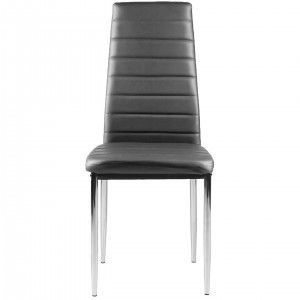 Zestaw 4 szarych krzeseł z ekoskóry na chromowanych nogach. Wysokie wyprofilowane oparcie, miękkie wypełnienie pianką PU i stopki chroniące podłogę. Wytrzymała konstrukcja do 120 kg. Nowoczesny design od ModernHome.