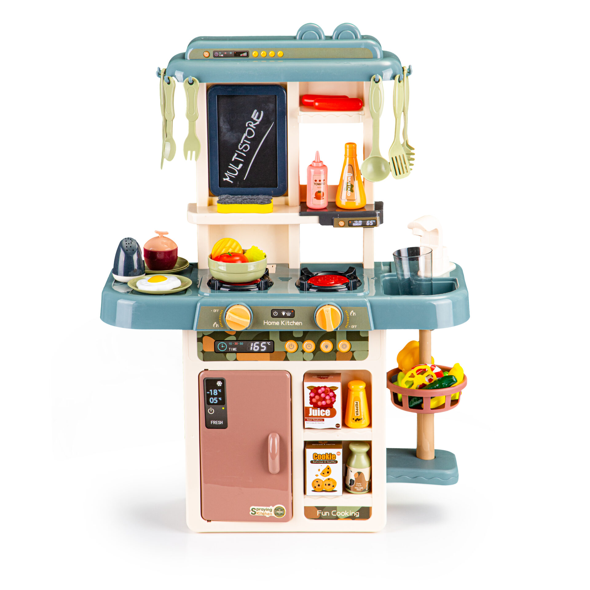 Interaktywna kuchnia dla dzieci z generatorem pary i obiegiem wody. Wyposażona w efekty świetlne LED i dźwiękowe. Zestaw 46 akcesoriów, w tym naczynia, warzywa i tablica kredowa. Bezpieczna zabawa 3+.