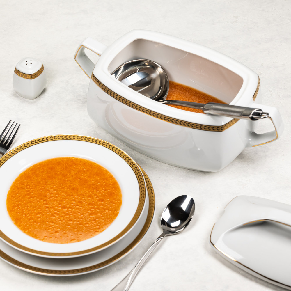 Niezbędna w każdym domu. Łyżka wazowa Kinghoff KH-3394 o długości 35,5 cm wykonana jest z wysokiej klasy stali nierdzewnej. Idealnie wyprofilowana czasza ułatwia nalewanie zup, kremów, sosów czy gulaszu bez rozlewania. Solidna konstrukcja gwarantuje, że chochla nie wygnie się pod ciężarem gęstej potrawy. Satynowe wykończenie rączki nadaje jej elegancki wygląd.