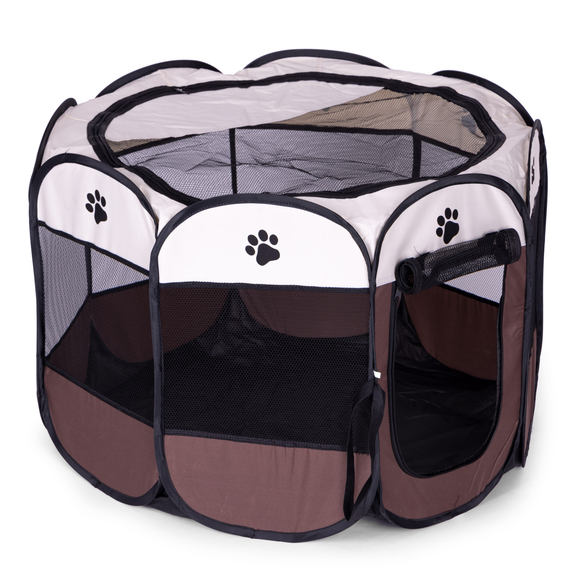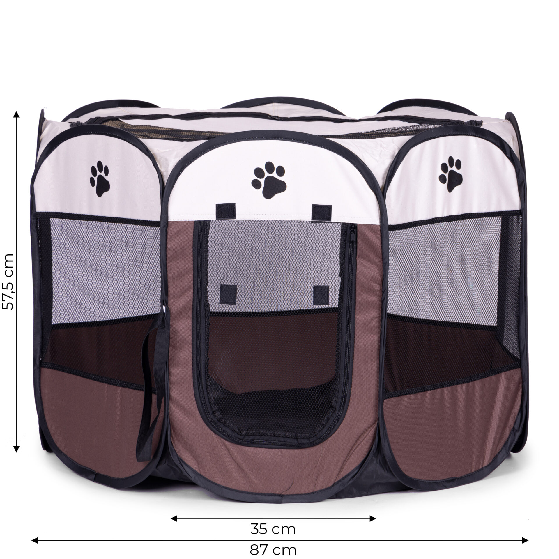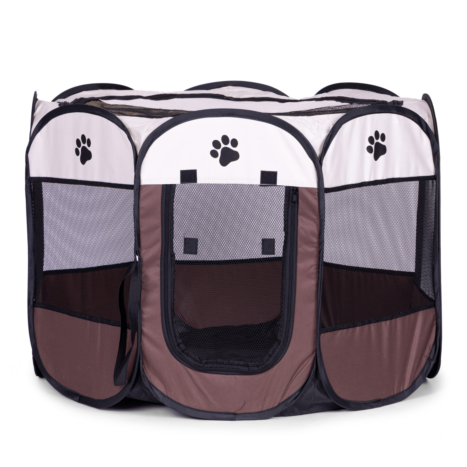 Szukasz mobilnego i bezpiecznego miejsca dla szczeniaka lub kociaka? Kojec od Petsi w kształcie ośmiokąta to idealne rozwiązanie do domu i ogrodu. Dzięki konstrukcji samorozkładającej, przygotowanie zagrody zajmuje kilka sekund. Siatkowe okna zapewniają doskonałą cyrkulację powietrza i pozwalają zwierzęciu na stałą obserwację otoczenia, redukując jego stres.