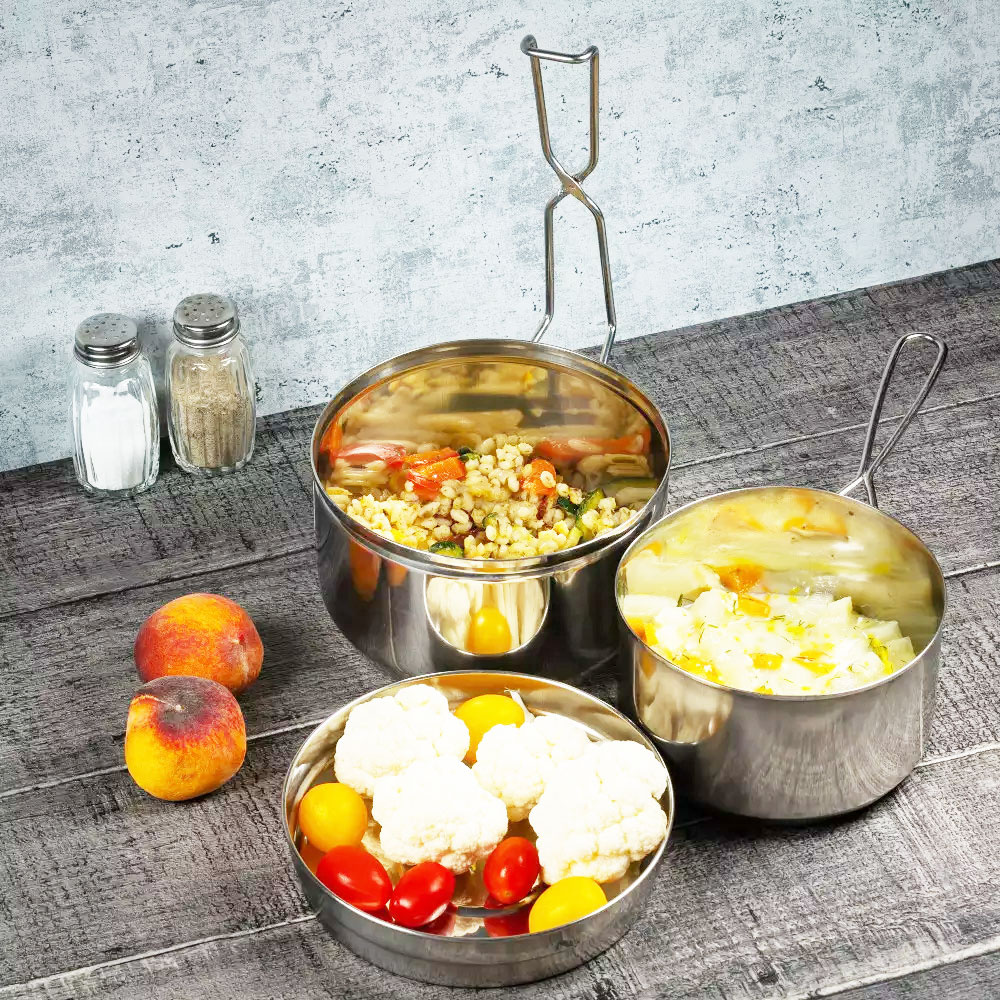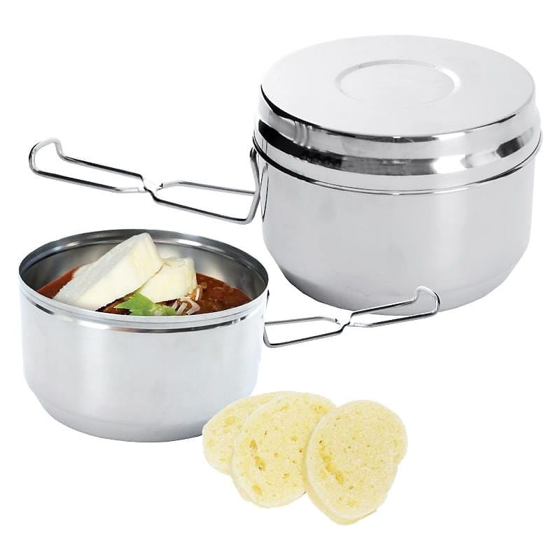 Niezbędnik każdego harcerza, turysty i miłośnika survivalu. Menażka Kinghoff KH-1373 składa się z 3 elementów wykonanych z trwałej stali nierdzewnej, które składają się w jedną, kompaktową całość. Zestaw zawiera: garnek główny (1,5L), mniejszy garnek/patelnię (0,9L) oraz talerz/pokrywkę. Składane uchwyty pozwalają na wygodne gotowanie nad ogniskiem lub na kuchence turystycznej, a po złożeniu nie zajmują miejsca w plecaku.