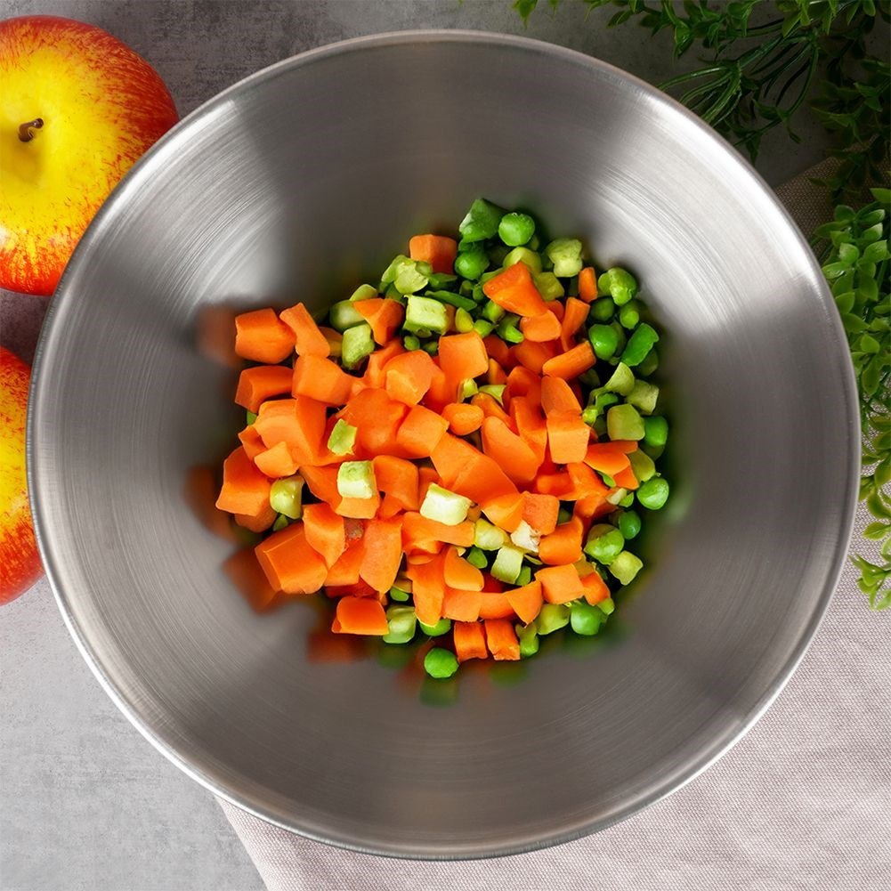 Stalowa miska kuchenna z antypoślizgowym dnem. Pojemność 1,9L. Stabilna, trwała, łatwa w myciu. Do mieszania i serwowania. Marka Vilde.