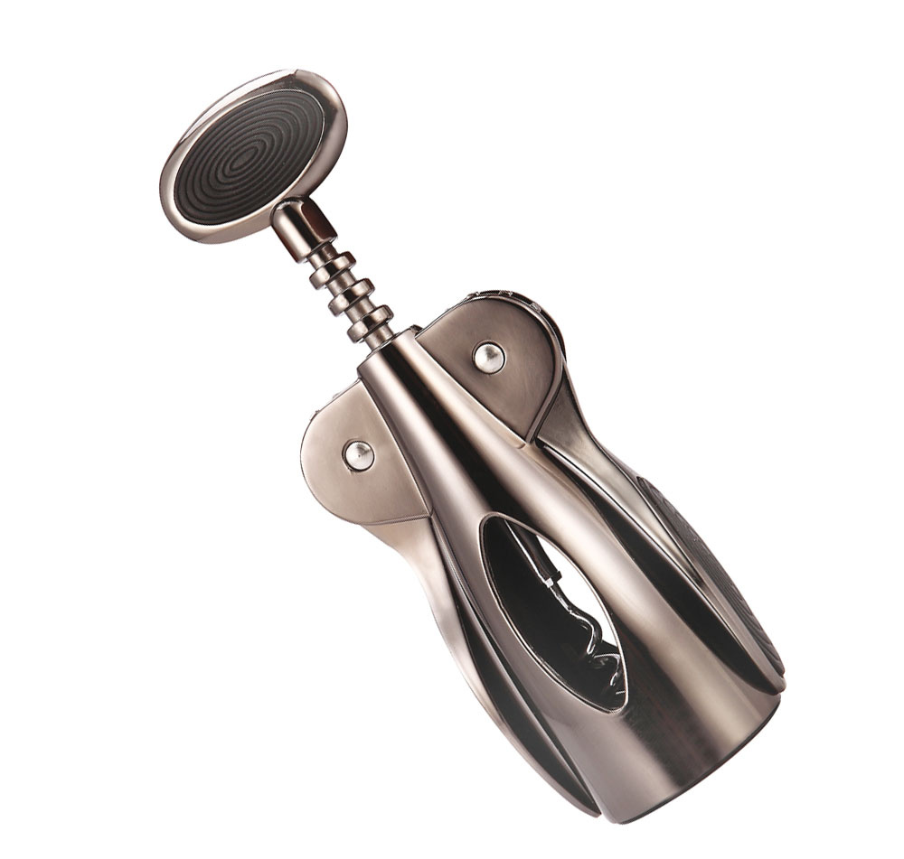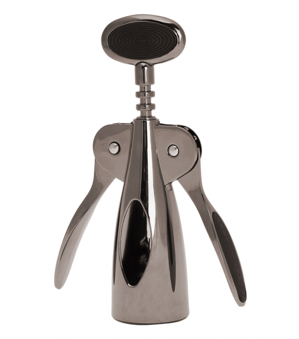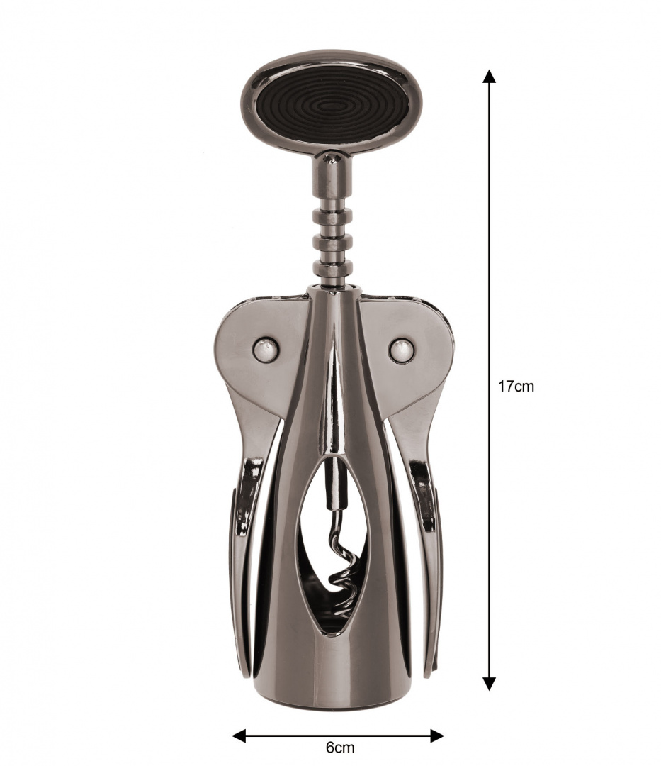 Solidny korkociąg skrzydełkowy do wina. Kolor grafitowy. Łatwe otwieranie butelek bez wysiłku. Stalowa konstrukcja. Marka Kinghoff.