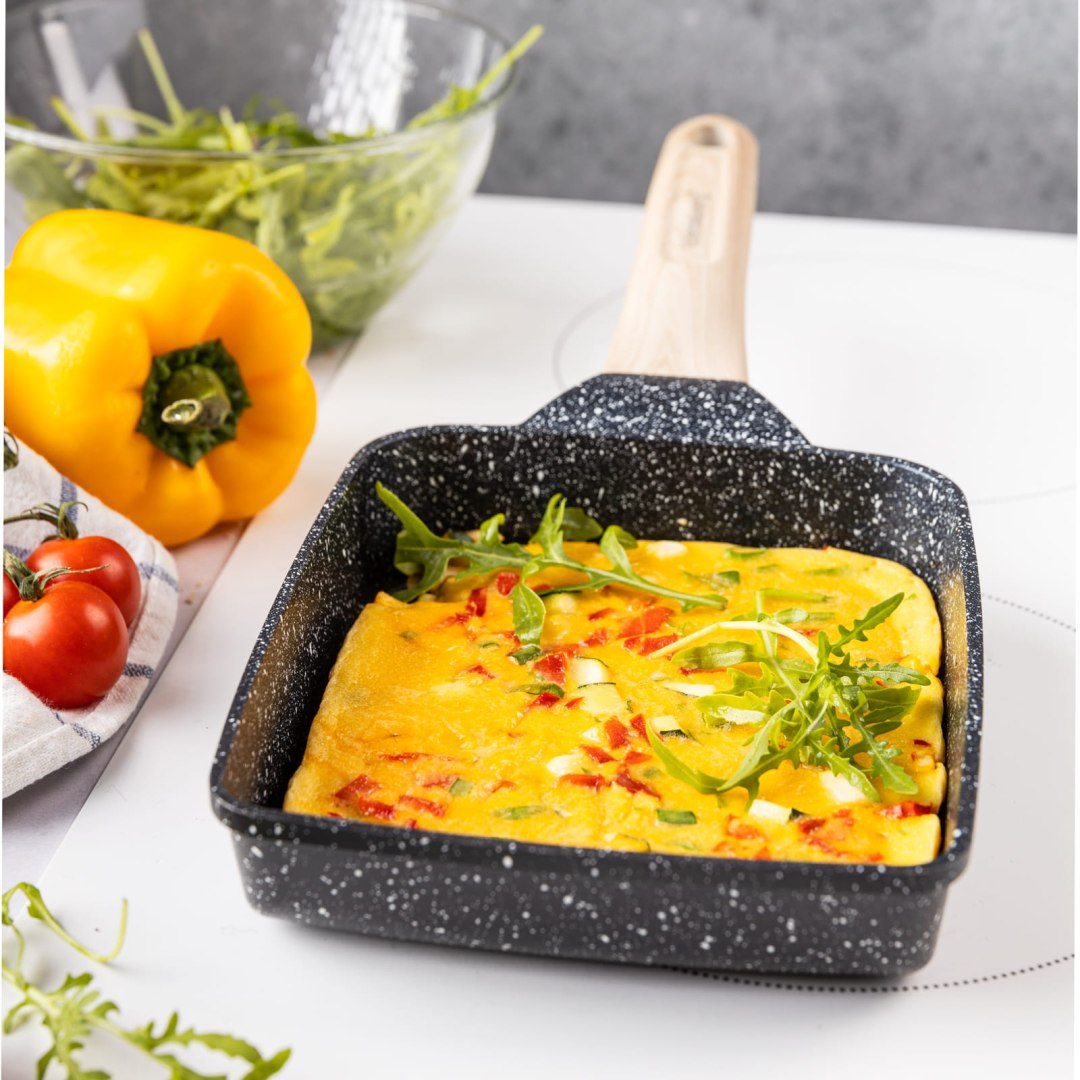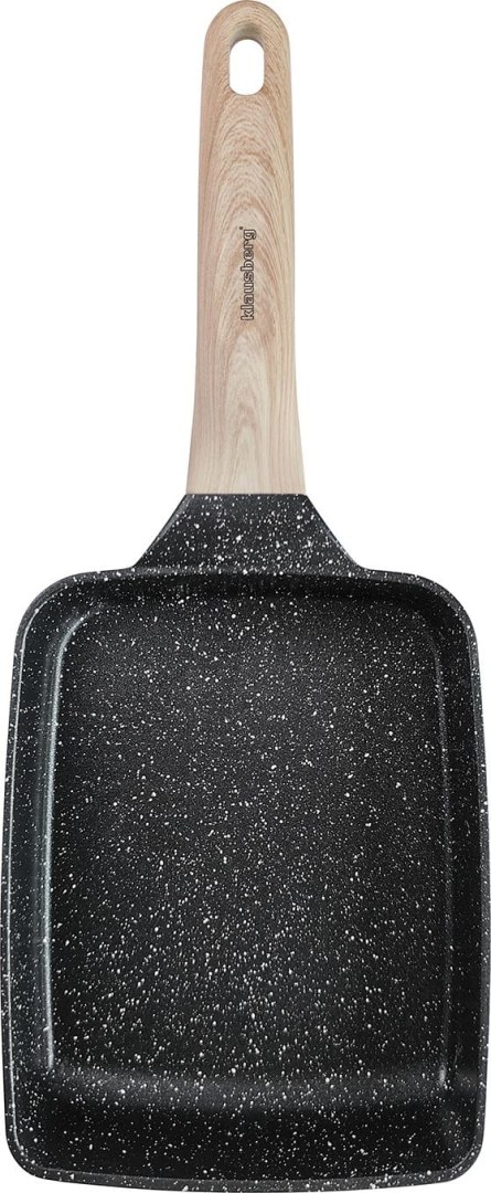 Smaż, duś i zapiekaj. Prostokątna patelnia Klausberg KB-7813 (wymiary 36×15 cm) to nietypowe, ale niezwykle praktyczne naczynie. Jej podłużny kształt jest idealny do smażenia ryb w całości, szparagów, długich kawałków mięsa czy przygotowywania roladek. Głębokie ścianki (4 cm) pozwalają na duszenie potraw w sosie. Czarna powłoka marmurowa jest odporna na zarysowania i łatwa w czyszczeniu.