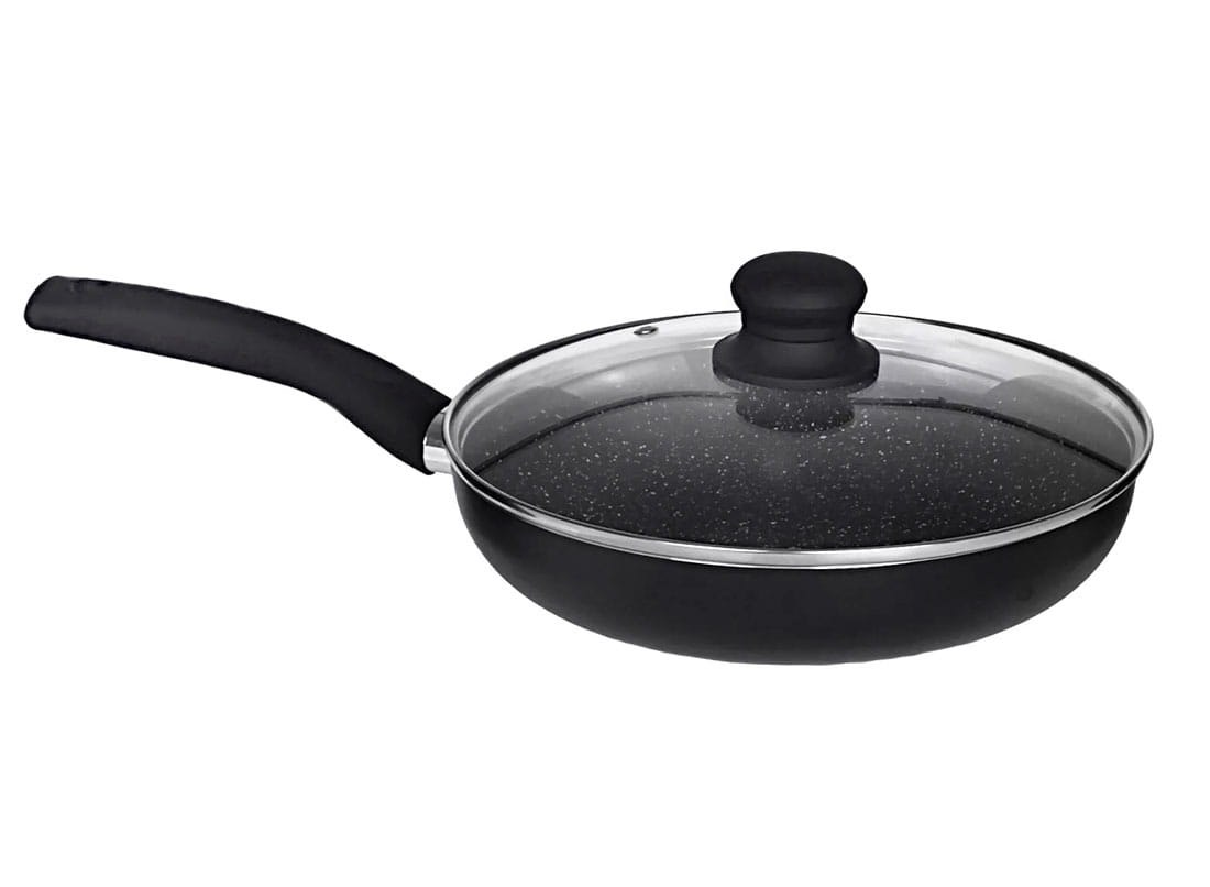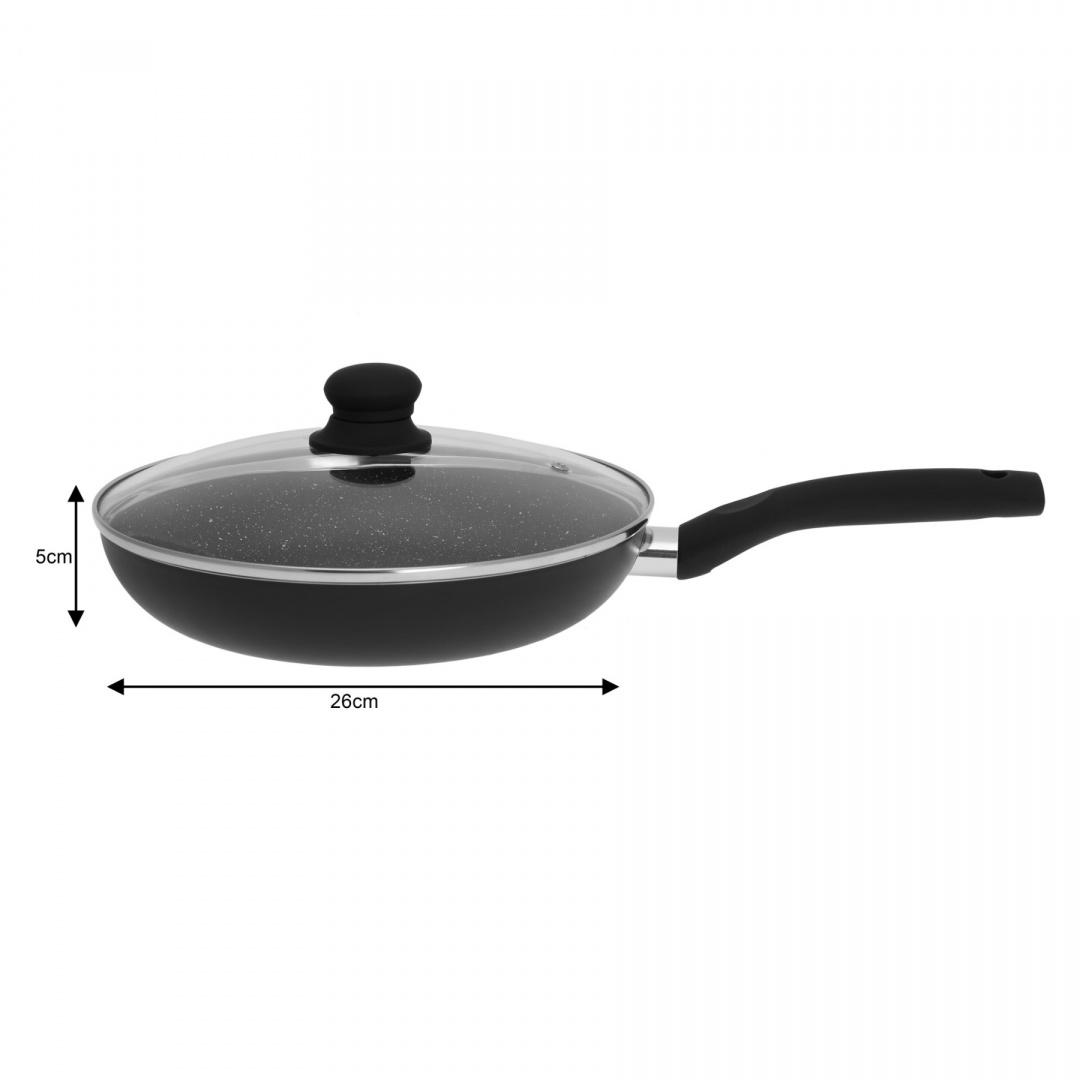 Patelnia 26 cm z powłoką marmurową. Nieprzywierająca, odporna na ścieranie. Uchwyt Soft Touch. Na indukcję i do zmywarki. Marka Kinghoff.