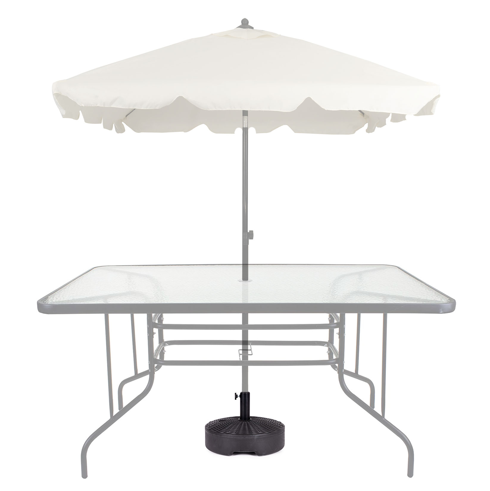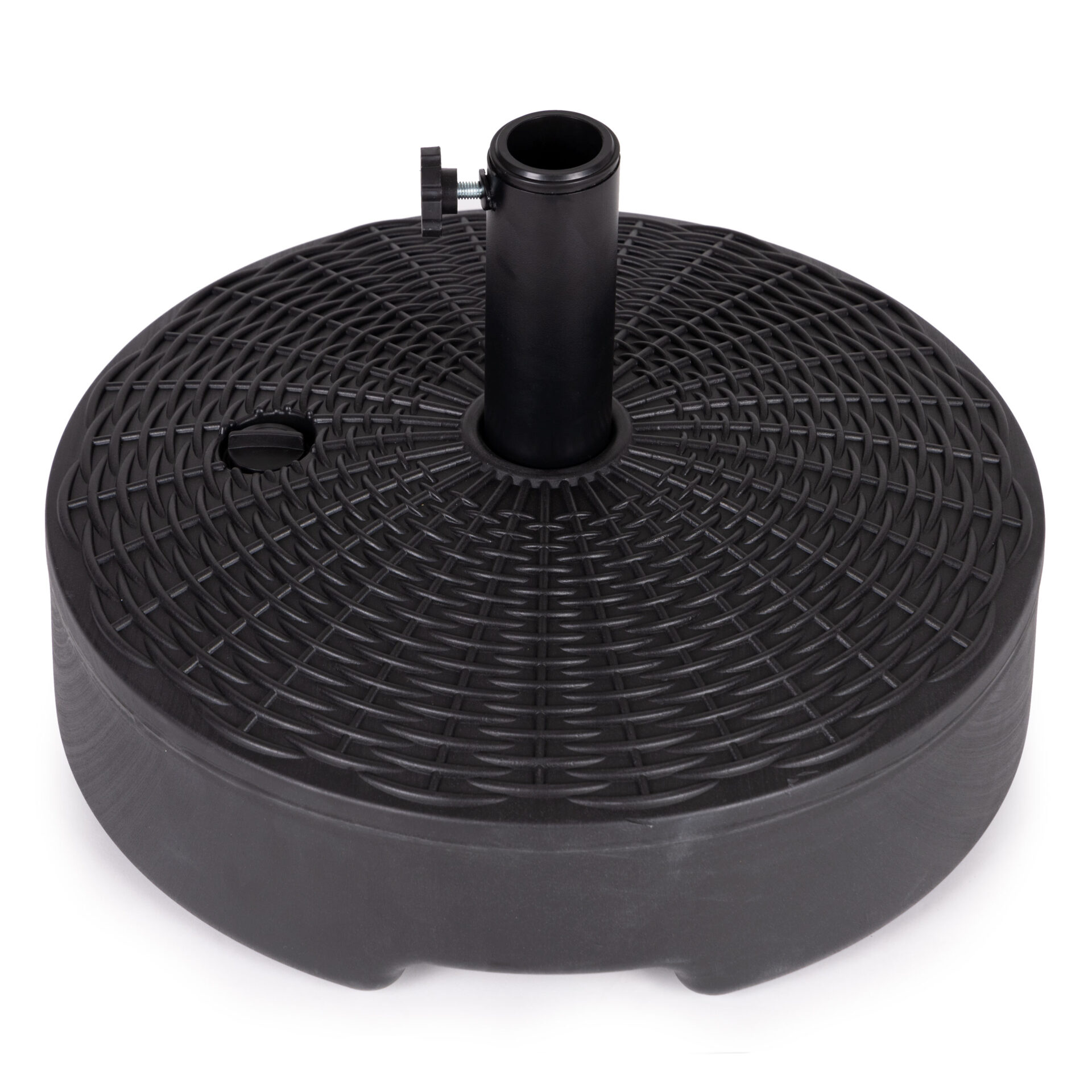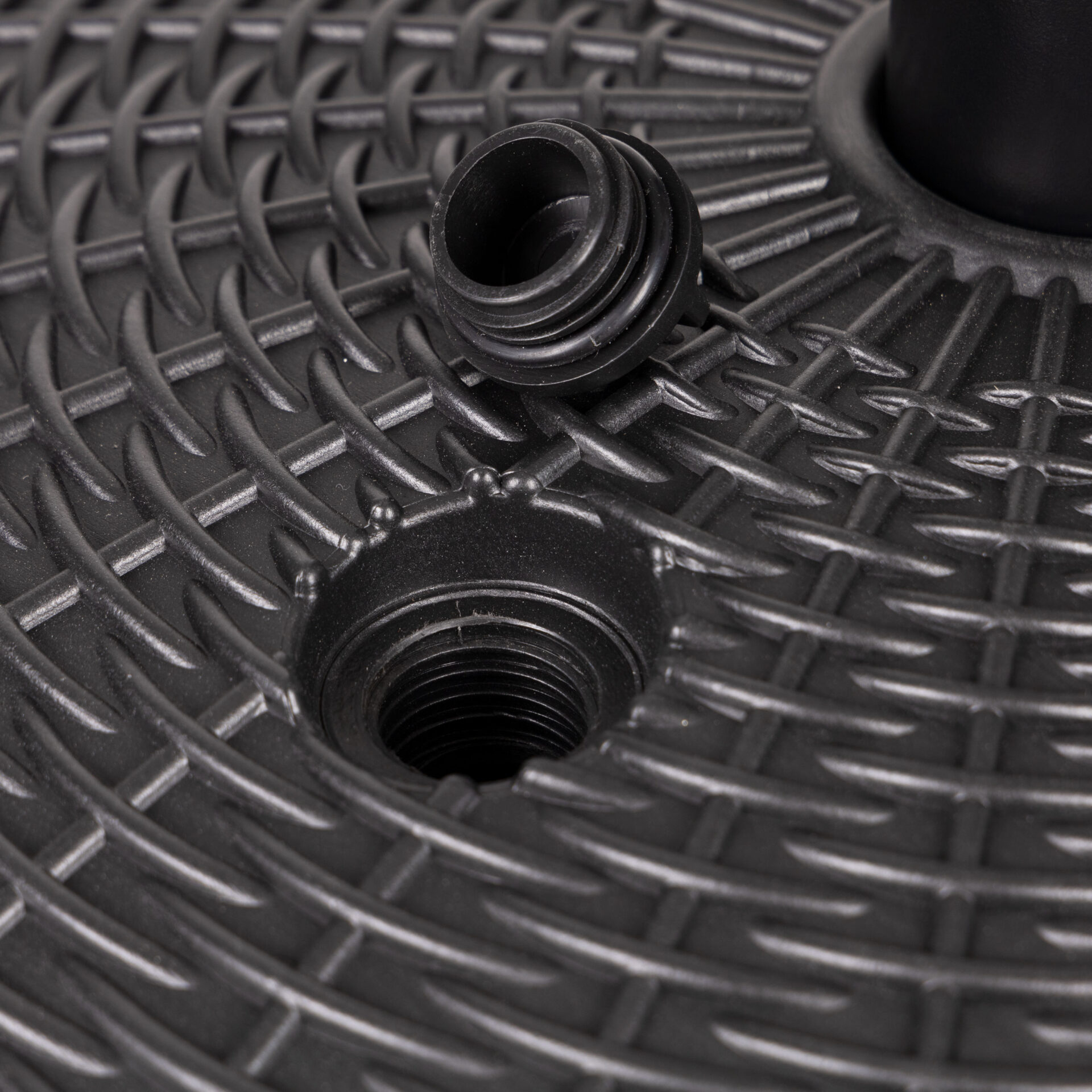 Okrągła podstawa pod parasol napełniana wodą (22L). Wykonana z trwałego HDPE, metalowy trzpień z pierścieniami 4/5 cm i śrubą dociskową. Zapewnia stabilność mniejszym parasolom ogrodowym.
