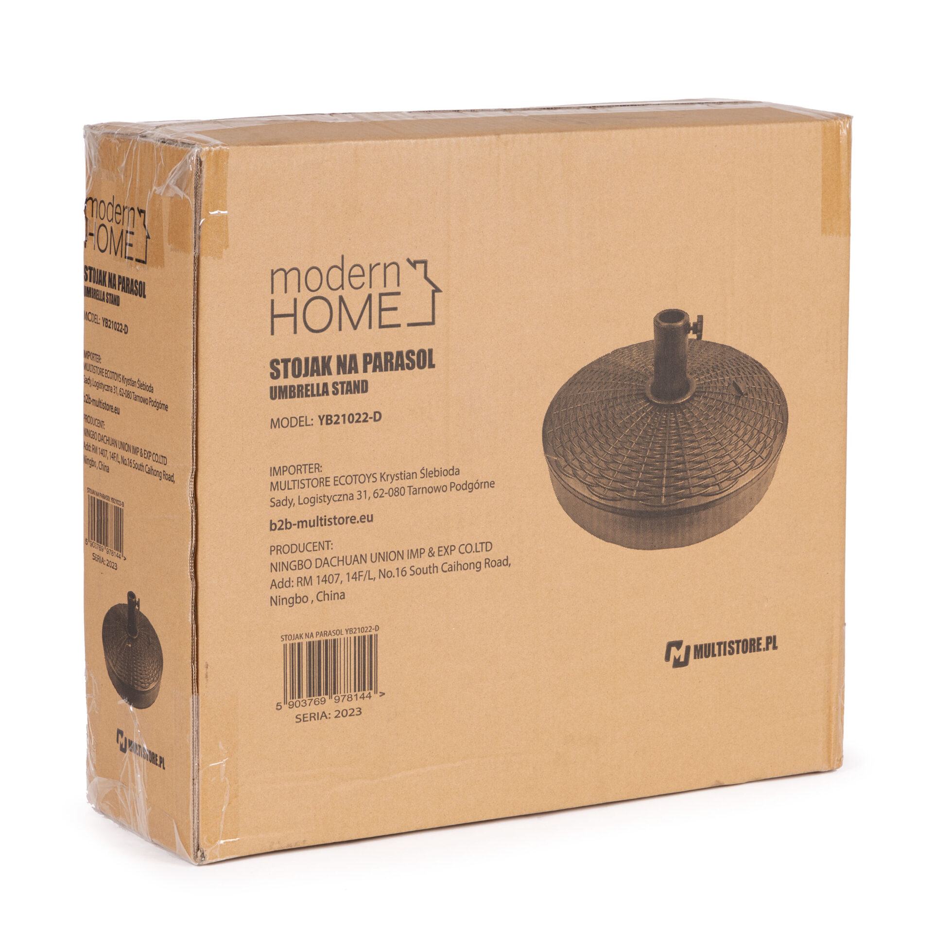 Zadbaj o bezpieczeństwo swojego parasola dzięki solidnej podstawie od MultiGarden. Wykonana z wytrzymałego tworzywa HDPE, po napełnieniu wodą osiąga wagę 22 kg, co gwarantuje pionową pozycję parasola nawet przy podmuchach wiatru. Metalowe gniazdo malowane proszkowo zapewnia odporność na korozję.