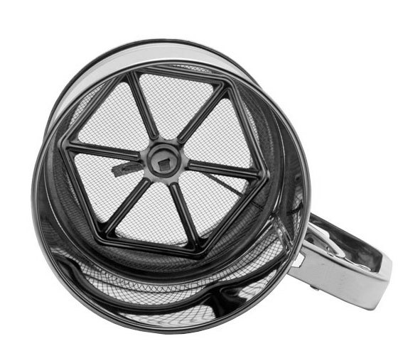 Więcej mąki, mniej dosypywania. Model Kinghoff KH-3102 to powiększona wersja klasycznego przesiewaka, mieszcząca ok. 450g sypkich produktów. Idealny do pracy przy większych wypiekach, gdzie liczy się czas i wygoda. Mechanizm spustowy w uchwycie uruchamia obrotowe śmigiełko, które przeciera mąkę przez sito, napowietrzając ją i rozbijając wszelkie grudki. Niezbędnik w kuchni każdego cukiernika.
