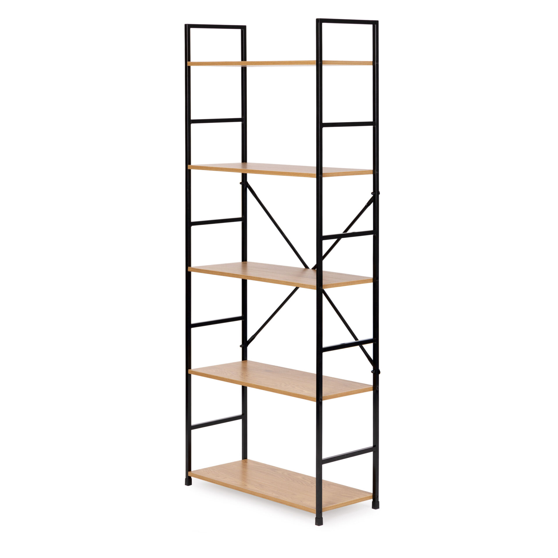 Pojemny i stylowy regał od ModernHome o szerokości 58,5 cm to idealne rozwiązanie dla osób potrzebujących więcej miejsca na przechowywanie. Industrialny design łączy w sobie surowość metalu malowanego proszkowo z ciepłem półek imitujących drewno. Dzięki regulowanym stopkom i mocowaniu do ściany, mebel jest w 100% stabilny i bezpieczny dla domowników.