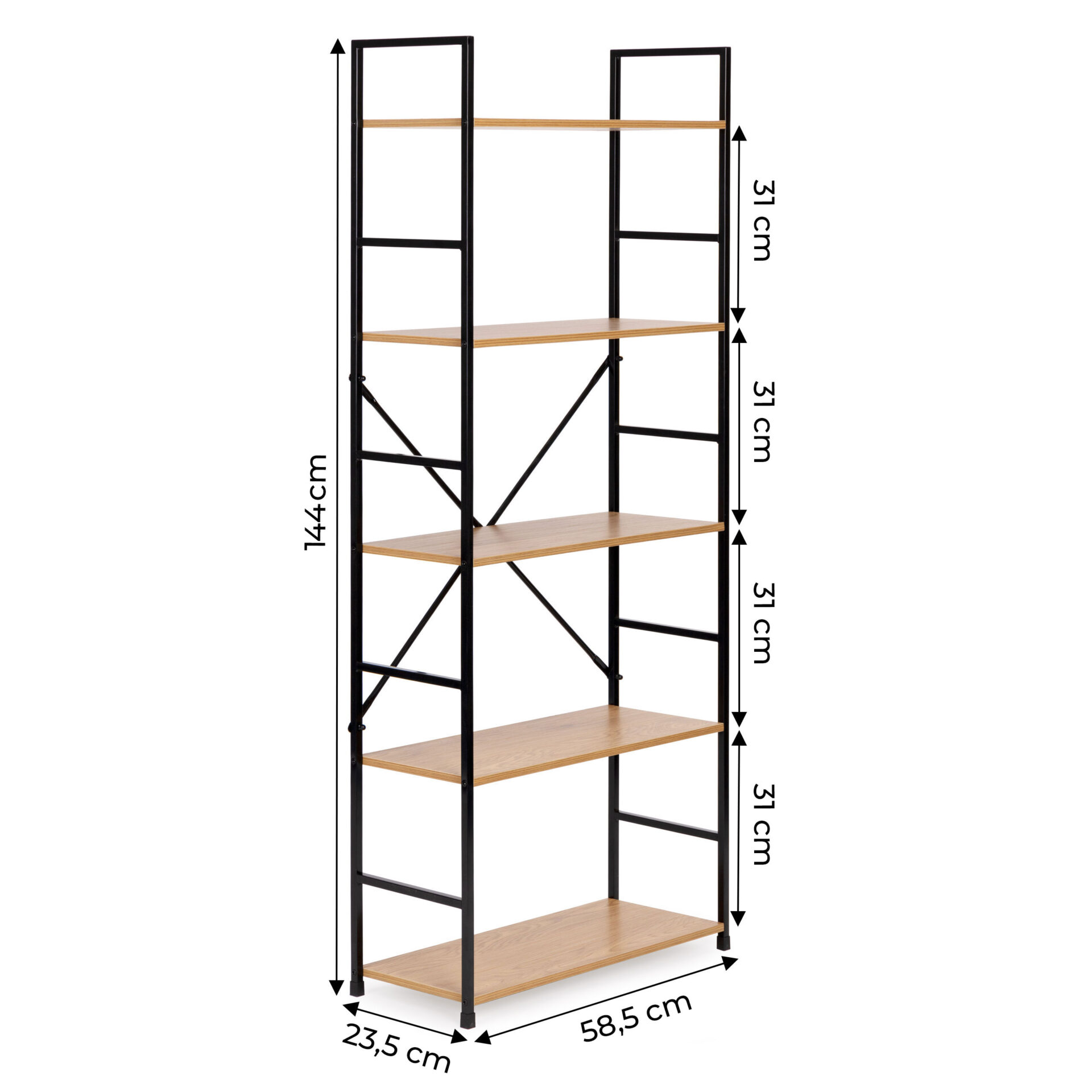 - Szerokie półki: Wymiary 58,5×23,5 cm pozwalają na swobodną organizację biblioteczki lub kolekcji roślin.