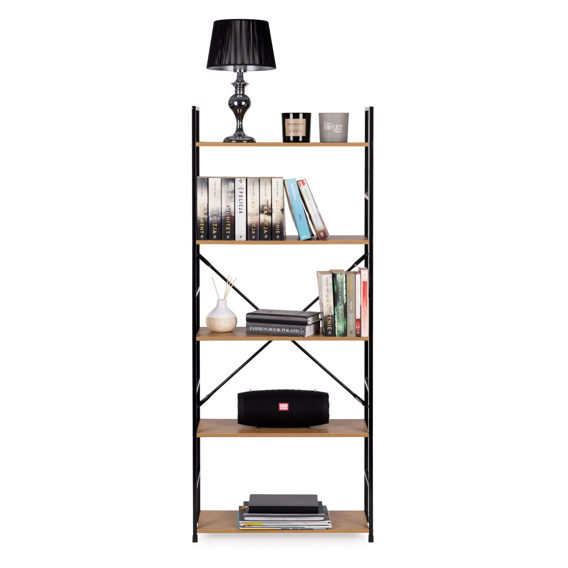 | Specyfikacja | 5 półek:, Przeznaczenie: salon, pokój, sypialnia, łazienka, biuro, Waga: 8, 1 kg |