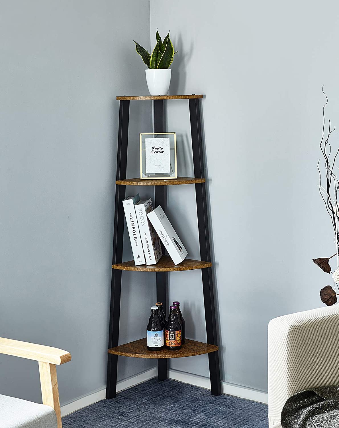 Regał narożny 4 półki. Styl rustykalny loft. Idealny do salonu i biura. Stabilna konstrukcja.