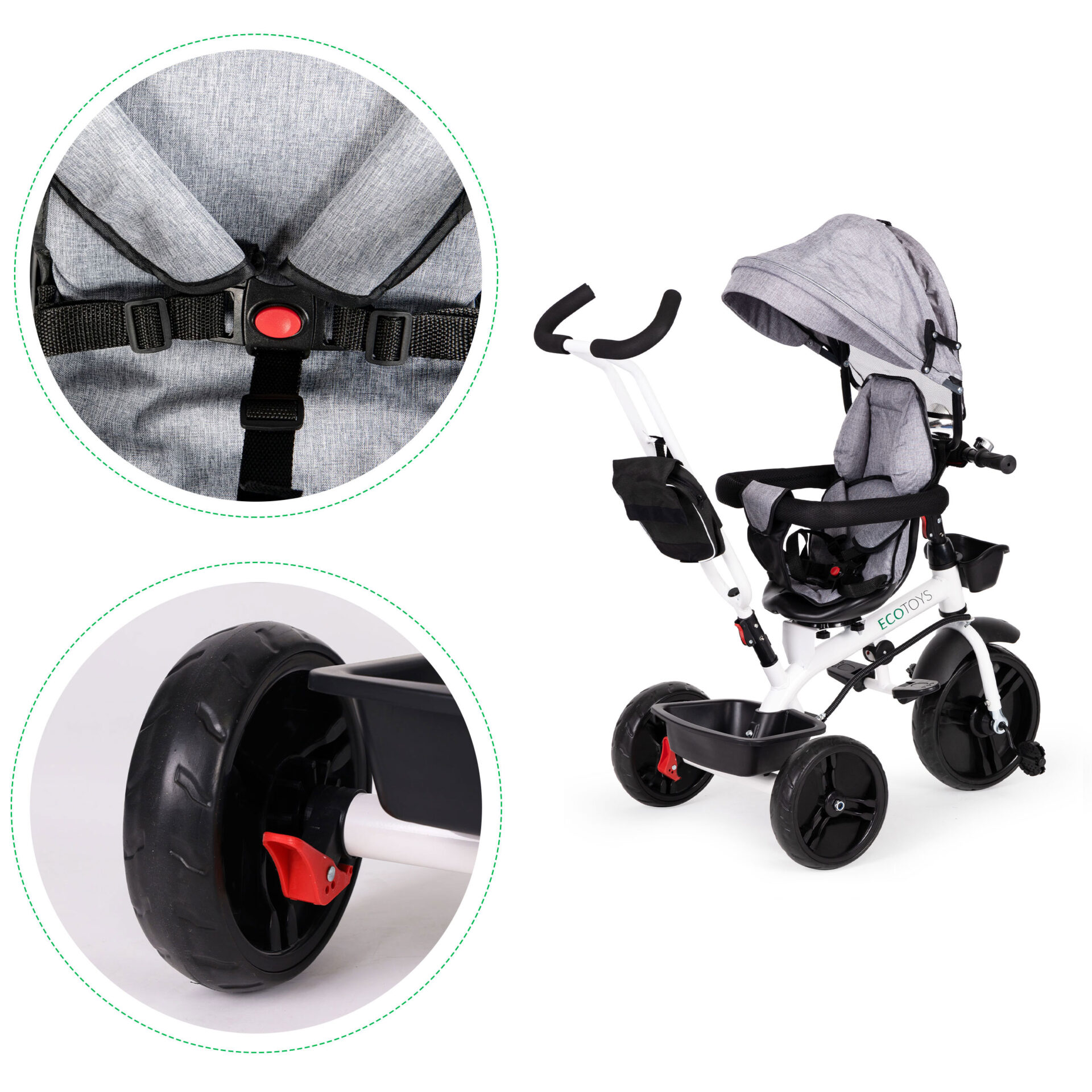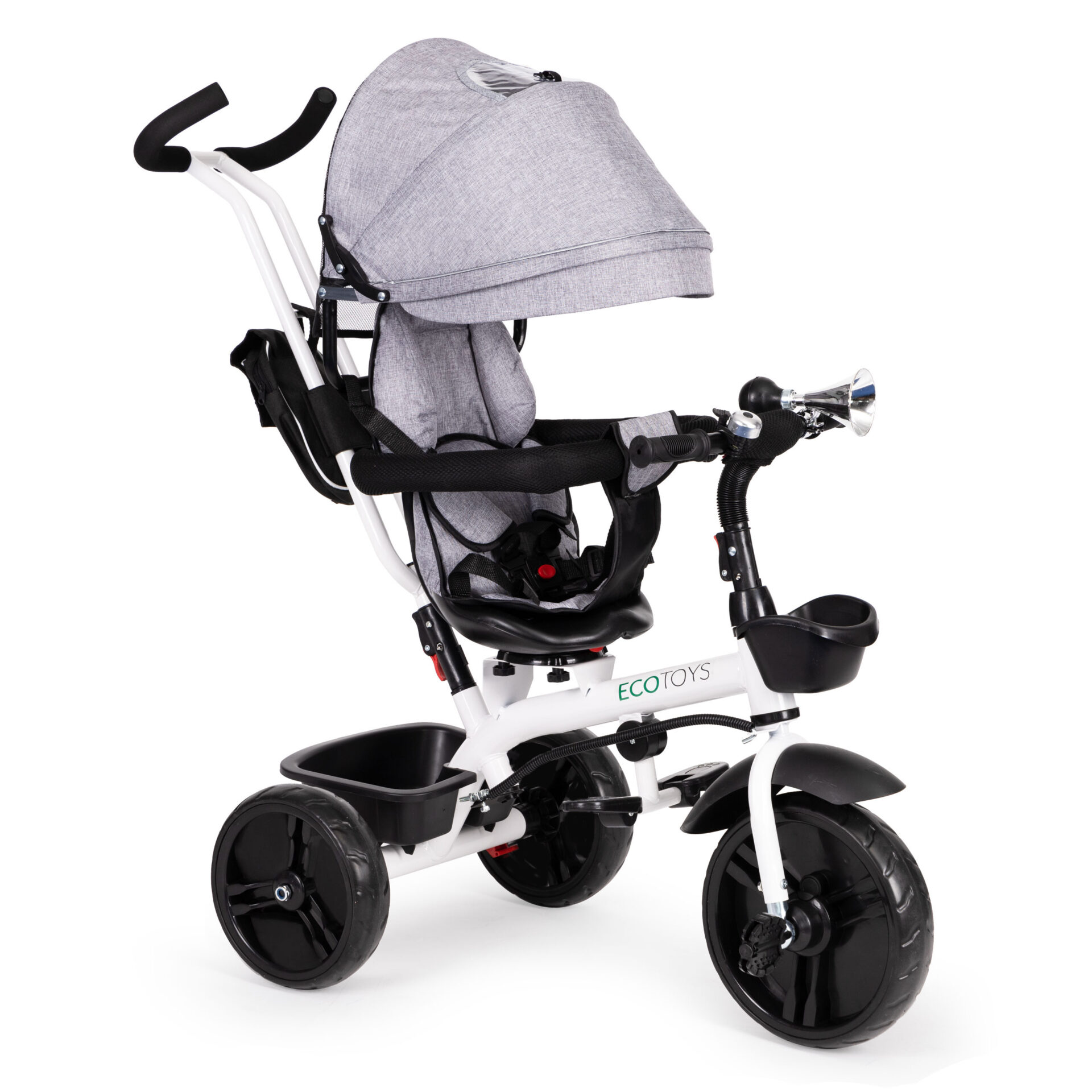 Rowerek trójkołowy obrotowy 360 Szary z daszkiem ECOTOYS